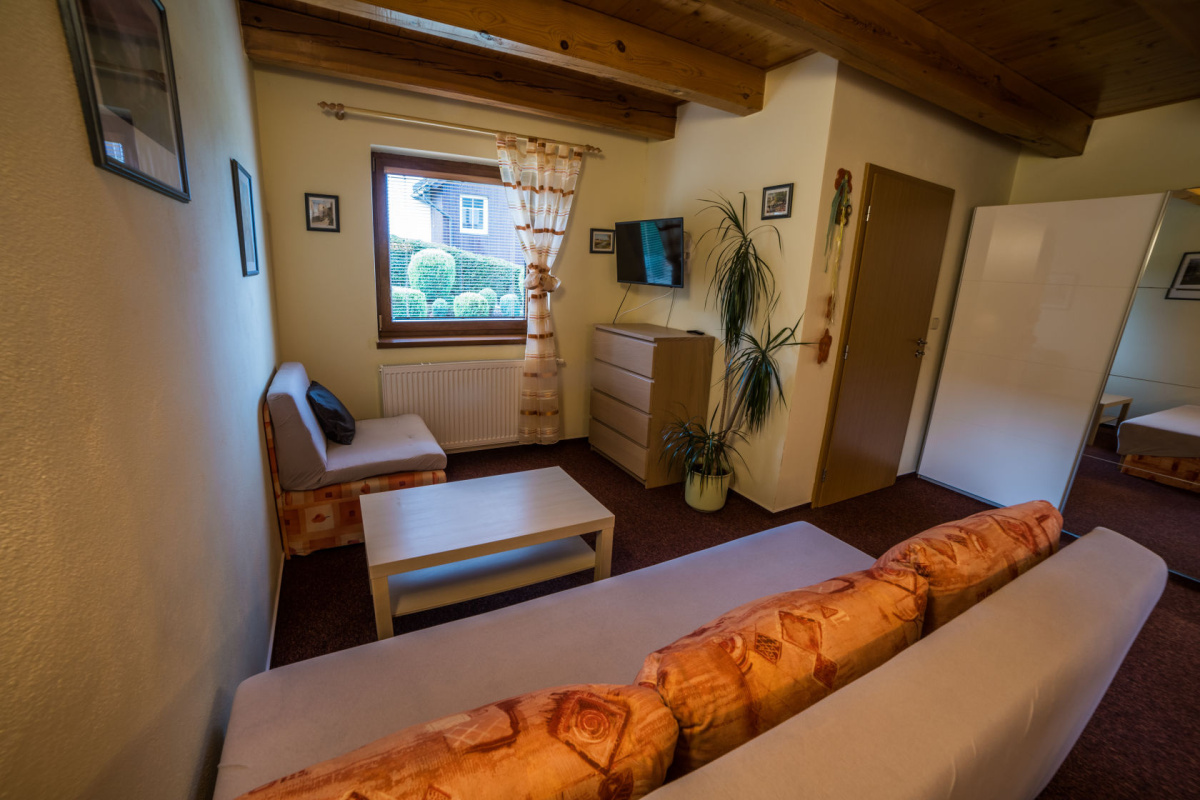 Při pobytu na 1 noc je příplatek 400 Kč na apartmán. U silvestrovského pobytu účtujeme při nižším počtu osob v apartmánu jako při obsazení 2 dospělými a 2 dětmi.